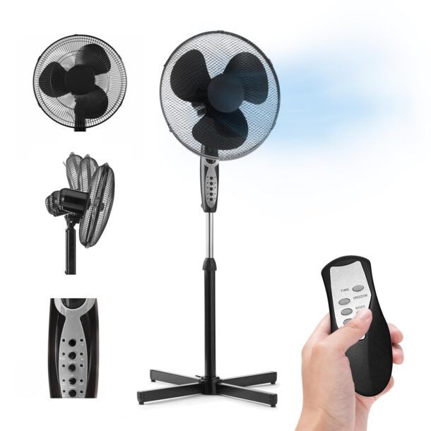 Uno dei punti di forza più rilevanti è la combinazione tra ampio diametro delle pale e funzione oscillante. L’oscillazione permette di distribuire l’aria su una porzione significativa della stanza, evitando che la frescura resti concentrata solo davanti alla griglia. In più, hai la possibilità di regolare sia l’altezza (fino a circa 125 cm) sia l’inclinazione della testa, così da orientare il flusso esattamente dove ti serve, che tu sia seduto alla scrivania, sul divano o sdraiato a letto.
