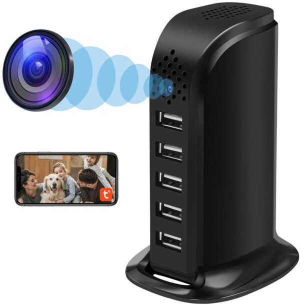 La telecamera nascosta WiFi di Nisanmoon, integrata in un caricatore USB a 5 porte, rappresenta una soluzione innovativa per chi cerca discrezione e funzionalità avanzate. Questo dispositivo combina la praticità di un caricatore multi-dispositivo con le capacità di sorveglianza di una telecamera spia ad alta definizione. Grazie alla sua risoluzione video di 1080p, garantisce immagini nitide e dettagliate, permettendoti di monitorare l'ambiente circostante senza destare sospetti.