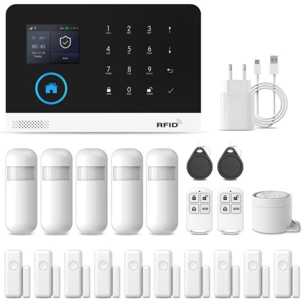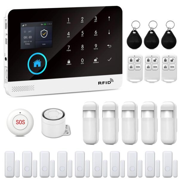 Il PGST Sistema di allarme Casa WIFI GSM rappresenta una soluzione avanzata e versatile per la sicurezza domestica, ideale per appartamenti, condomini e piccole imprese. Questo sistema di allarme antifurto da 8 pezzi include una stazione base di allarme, un sensore porta, un sensore di movimento, due telecomandi, due tessere di accesso e una sirena cablata, offrendo una protezione completa e integrata.