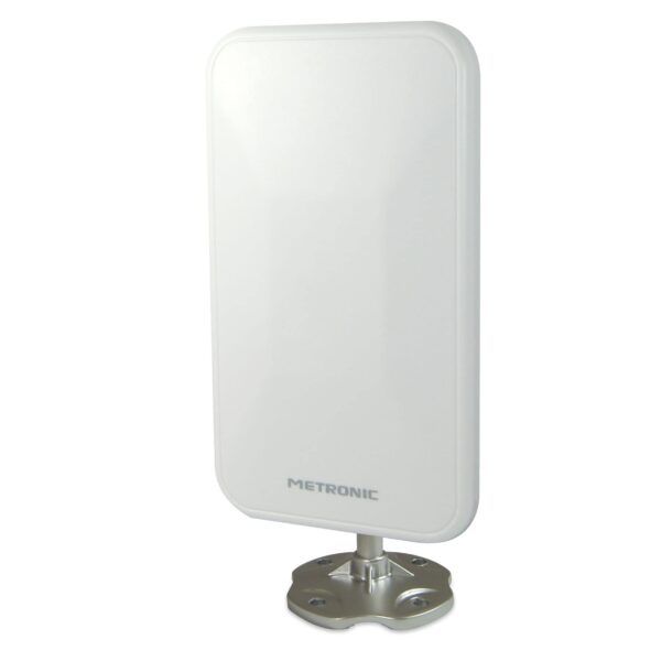 La Metronic 415981 è dotata di una base orientabile a 360° con attacco universale, che permette di posizionarla in modo ottimale per ricevere i segnali televisivi. L'attacco può essere fissato su un balcone (con un diametro massimo di 40 mm) o su una parete, grazie ai viti e tasselli inclusi nella confezione.