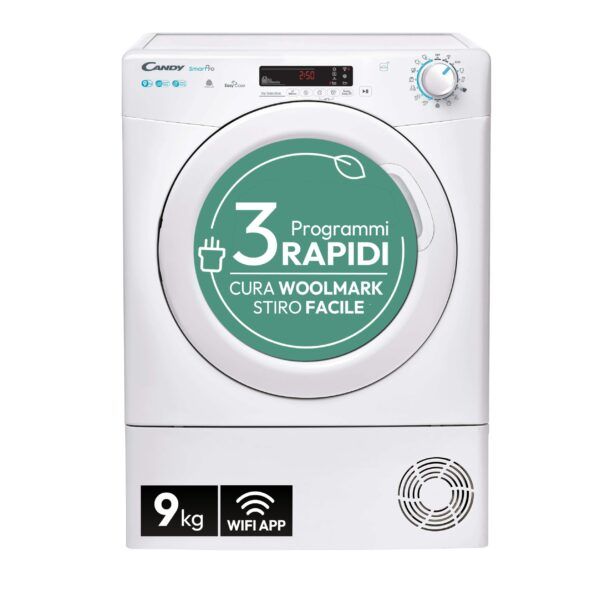 Infine, se hai bisogno di asciugare rapidamente i tuoi vestiti, questa asciugatrice mette a disposizione cicli rapidi, ideali per chi ha poco tempo a disposizione. La combinazione di funzionalità avanzate, design moderno e l'esperienza di un marchio affidabile come Candy rendono l'Asciugatrice Candy Smart Pro CSOE H9A2DE-S una scelta eccellente per tutte le esigenze di asciugatura.