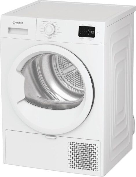 Questa asciugatrice Indesit C YD 92D, che chiamerò semplicemente Indesit 9 kg a pompa di calore, punta chiaramente su capacità generosa e praticità quotidiana. Con il suo cestello da 9 kg riesci a gestire senza problemi il bucato di una famiglia, inclusi capi voluminosi come asciugamani e lenzuola, mantenendo comunque un ingombro standard grazie alle dimensioni compatte 60,7 x 65 x 88,5 cm e al design a carico frontale, facile da inserire anche in spazi già organizzati.