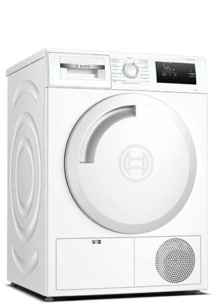 La Bosch WTH85V07II Serie 4 è un'asciugatrice a pompa di calore che si distingue per la sua efficienza energetica e le sue funzionalità avanzate. Con una capacità di 7 kg, è perfetta per gestire il bucato quotidiano di una famiglia media, offrendo prestazioni eccellenti in un design compatto e moderno.