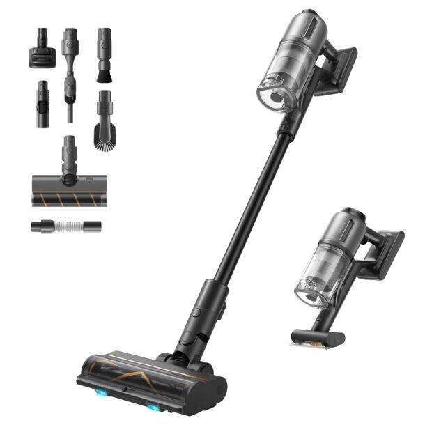 L'Ultenic U20 si presenta come un aspirapolvere senza fili di ultima generazione, caratterizzato da una potenza di aspirazione eccezionale grazie al suo motore brushless da 600 W. Questo dispositivo è progettato per affrontare con facilità qualsiasi tipo di sporco, dai peli di animali alla polvere più ostinata, su superfici diverse come pavimenti e tappeti. La sua testina innovativa, dotata di setole morbide e dure combinate con strisce in pelle, assicura un'efficienza ottimale nell'assorbimento dei residui.