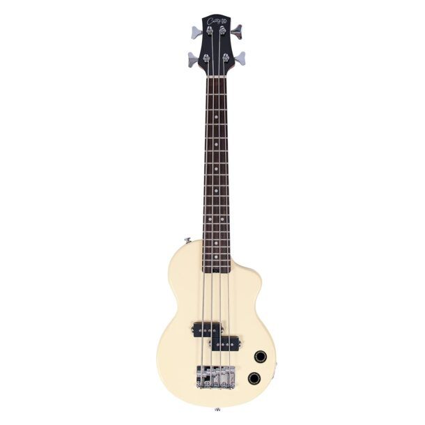 Questo mini basso Carry-on bianco è pensato chiaramente per offrirti uno strumento compatto ma serio, non un semplice giocattolo ridotto di dimensioni. Il corpo in pioppo con parte posteriore in tiglio e la parte superiore in acero sono scelte tipiche di modelli ben progettati: legni leggeri ma stabili, che contribuiscono a un buon equilibrio complessivo tra comfort e risposta sonora. Con i suoi 79,6 cm di lunghezza e 3,78 kg di peso, rimane uno strumento maneggevole che puoi gestire senza fatica anche in sessioni prolungate.