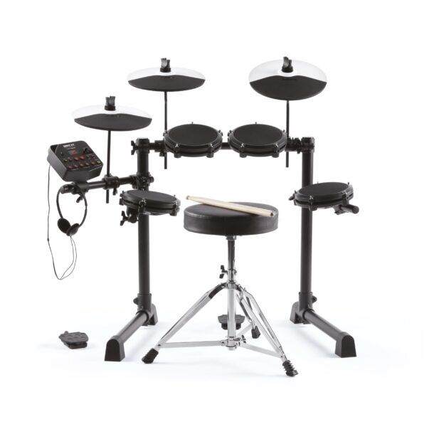La Alesis Debut Kit è una batteria elettronica per bambini ideale per avvicinare i più piccoli al mondo della musica e delle percussioni. Questo strumento è composto da 4 pad elettronici in mesh da 6", tre piatti da 10", un solido rack in metallo, modulo drum, sgabello, bacchette, cuffie e cavi. Il design elegante e il colore nero lo rendono adatto a qualsiasi ambiente domestico o studio musicale.