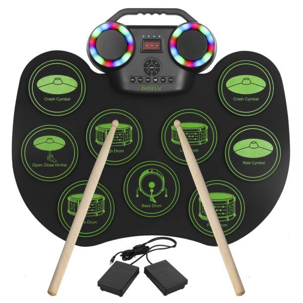 Batteria elettronica Kit, Bonvvie batteria a rullo digitale ricaricabi...