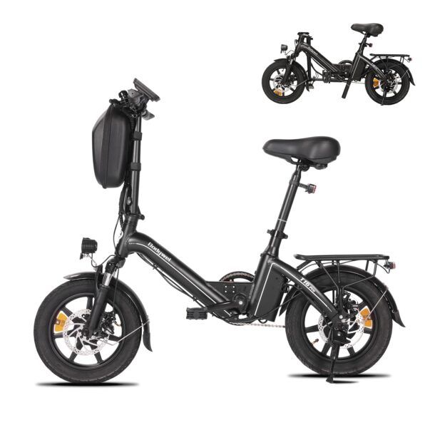 La Bodywel T16Pro è una bici elettrica pieghevole che si distingue per la sua versatilità e praticità, progettata per chi cerca un mezzo di trasporto urbano efficiente e compatto. Con un design elegante in nero, questa bicicletta combina estetica moderna e funzionalità avanzate, rendendola ideale per il commuting cittadino.