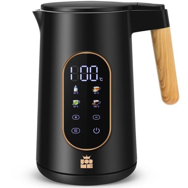 Questi modelli di bollitori elettrici hanno un quadrante o dei pulsanti, sulla base o sul recipiente, che possono essere usati per selezionare la temperatura che si preferisce, che generalmente oscilla tra i 40° e 100°. Alcuni bollitori elettrici sono dotati anche di display digitale per facilitare la lettura della temperatura impostata.