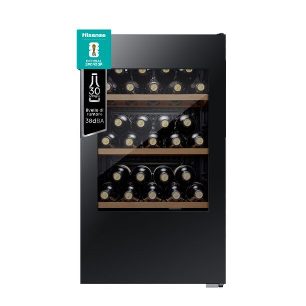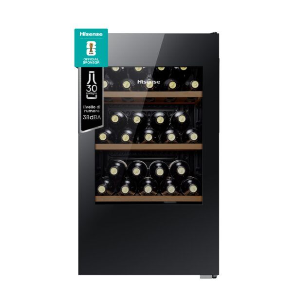 La Hisense RW12D4NWG0 si distingue anche per la sua efficienza, pur mantenendo una bassa rumorosità di soli 39dB e basse vibrazioni. Questo dettaglio è fondamentale per offrire al vino un ambiente di conservazione adatto, minimizzando le possibili interferenze che potrebbero alterarne la qualità.