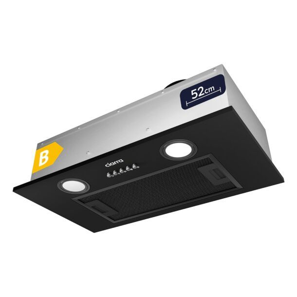 Questa cappa CIARRA da 52 cm a incasso si distingue subito per il suo design salvaspazio: con dimensioni di 52 x 28 x 13 cm e forma compatta, si integra dietro l’anta del pensile, rimanendo praticamente invisibile quando non la usi. Se punti a una cucina lineare e pulita, la finitura nera elegante contribuisce a dare continuità visiva senza elementi sporgenti o ingombranti.