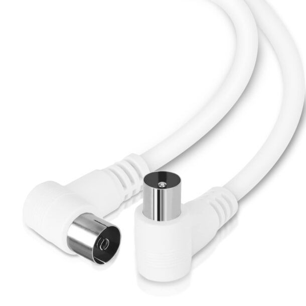 La caratteristica che colpisce subito chi lavora con installazioni TV in spazi reali è la presenza dei connettori angolati a 90°. Questa scelta progettuale è molto più importante di quanto sembri a prima vista: ti permette di collegare la TV anche quando è vicina alla parete, riducendo le sollecitazioni meccaniche sulla porta coassiale del televisore e sulla presa a muro. In contesti dove lo spazio è limitato, la riduzione della trazione sul connettore contribuisce a evitare allentamenti progressivi e microinterruzioni del segnale.