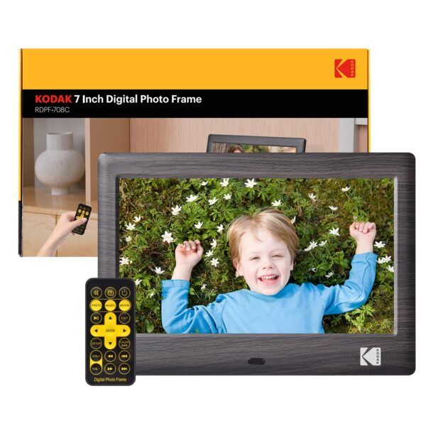 La Cornice Digitale 10 Pollici WiFi di KODAK è un prodotto tecnologicamente avanzato che permette di visualizzare le tue foto e video preferiti in modo semplice ed elegante. Il design moderno e raffinato, con cornice in legno grigio, la rende un elemento d'arredo versatile, adatto a qualsiasi ambiente.