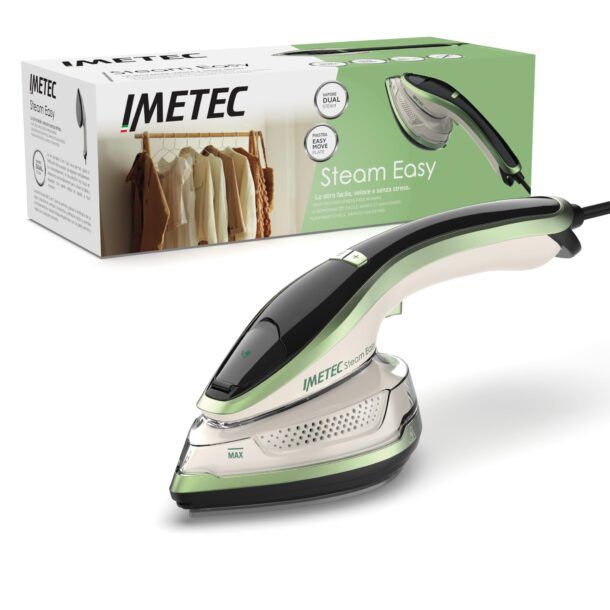 L'Imetec Steam Easy è un ferro da stiro portatile che si distingue per la sua versatilità e praticità, offrendo una soluzione efficace per chi desidera mantenere i propri capi impeccabili anche in viaggio. Con il suo design ergonomico, questo dispositivo ti permette di stirare sia in posizione verticale che orizzontale, adattandosi perfettamente alle tue esigenze quotidiane. La possibilità di utilizzare il ferro in modalità verticale è particolarmente utile per rinfrescare e rilassare le fibre dei vestiti direttamente sull'appendiabiti, senza necessità di un asse da stiro.