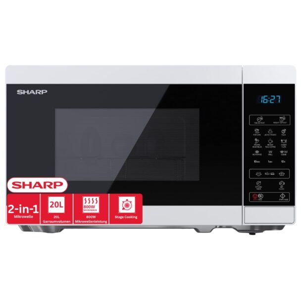 Il microonde Sharp YC-MG02E-W si presenta come un elettrodomestico versatile e funzionale, ideale per chi cerca efficienza e praticità in cucina. Con una capacità di 20 litri, questo microonde offre uno spazio sufficiente per riscaldare o cucinare porzioni generose, senza occupare troppo spazio sul piano di lavoro grazie alle sue dimensioni compatte di 32,4 x 44 x 25,8 cm.
