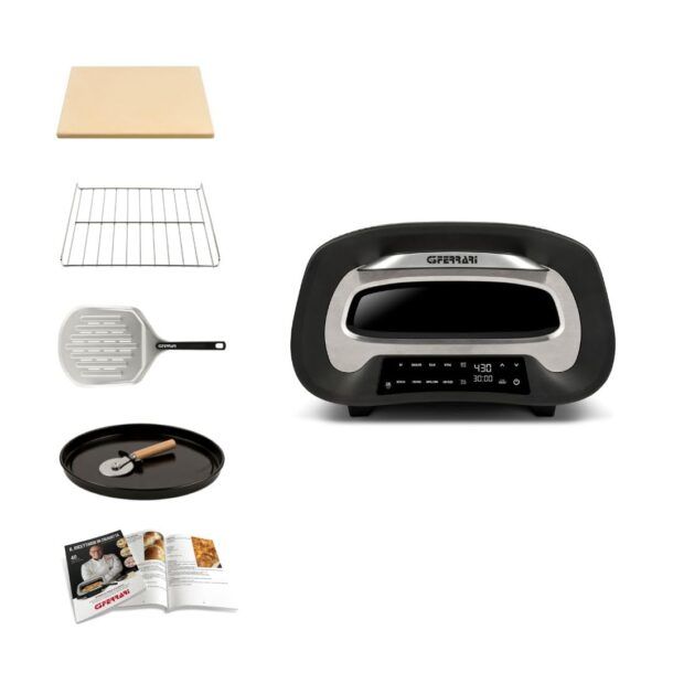 Il Pronto Pizza 2 Minuti di G3 Ferrari è un forno compatto ad alte prestazioni pensato per chi vuole riprodurre a casa una cottura professionale della pizza. Il cuore del prodotto è la combinazione tra la potenza di 1700 W, la temperatura massima fino a 430°C e la pietra refrattaria da 32 x 32 cm, elementi che ti permettono di ottenere una base asciutta e croccante e un cornicione ben sviluppato in circa 2 minuti di cottura effettiva, una soglia difficilmente raggiungibile con i forni tradizionali domestici.