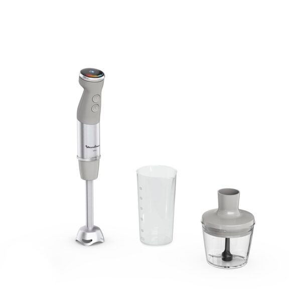 Il Moulinex Quickchef+ è un frullatore a immersione che si distingue per la sua potenza e versatilità, rendendolo un alleato indispensabile in cucina. Dotato di un motore da 1000 W, questo dispositivo garantisce prestazioni elevate grazie alla tecnologia con lame Powelix, che promette risultati fino al 30% più rapidi rispetto ai modelli precedenti della stessa linea. Le lame sono progettate per offrire una miscelazione uniforme, affrontando senza sforzo anche gli ingredienti più ostinati.