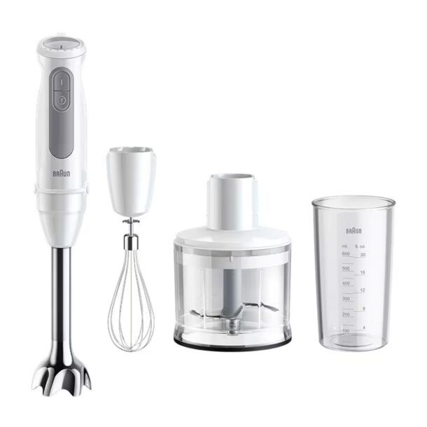 Il frullatore a immersione è accompagnato da tre accessori utili, tra cui un bicchiere da 700 ml, un contenitore tritatutto da 500 ml e un accessorio frusta per montare. Questi accessori aggiuntivi aumentano la versatilità del prodotto, permettendo di svolgere diverse operazioni in cucina con un solo dispositivo.