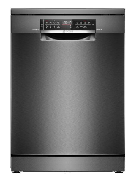 La Bosch Serie 6 SMS6ECC12E è una lavastoviglie da 60 cm a libera installazione pensata per chi cerca un prodotto avanzato, silenzioso e connesso. Il design in acciaio nero spazzolato le dà un aspetto moderno e professionale, adatto a una cucina contemporanea in cui l’estetica conta tanto quanto la funzionalità. Le dimensioni standard di 60 x 60 x 84,5 cm e la capacità di 14 coperti la rendono ideale se hai una famiglia o se cucini spesso e vuoi concentrare tutto in un unico ciclo ben carico.