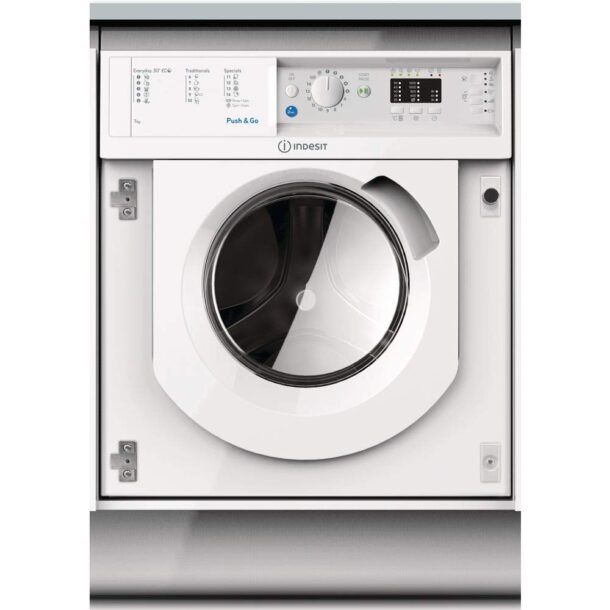La Indesit BI WMIL 71252 EU è una lavatrice da incasso con carico frontale, caratterizzata da un design elegante e minimalista in bianco. Questo modello si distingue per la sua capacità di 7 kg, ideale per famiglie medie, e per la velocità massima di rotazione di 1200 giri al minuto, che garantisce un'efficace azione di centrifuga.
