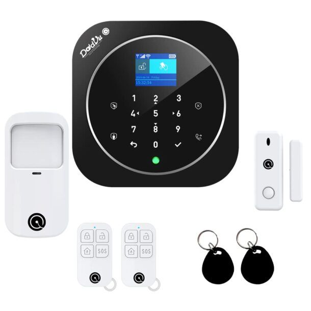 Il Sistema di Allarme casa senza fili di DadVu Soul & Technology è un kit completo per la sicurezza domestica, che combina le tecnologie WIFI, GSM e un combinatore telefonico per offrire una protezione affidabile e completa. Il sistema è composto da una centralina con tastiera touch e display, oltre a numerosi sensori e dispositivi wireless che possono essere facilmente installati in tutta la casa.