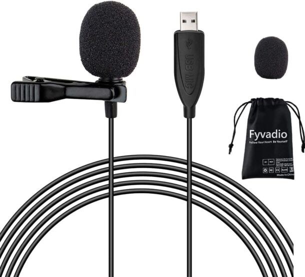Fyvadio Microfono USB, 2m Microfono Lavalier Computer Plug & Play cond...