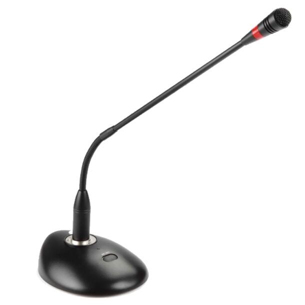 Dal punto di vista ergonomico, lo stelo flessibile offre un’escursione ampia e stabile: puoi adattare l’altezza e l’inclinazione a relatori di diversa statura senza dover spostare la base. L’anello luminoso che indica la condizione operativa è un dettaglio che, in pratica, fa la differenza: chi parla capisce immediatamente se il microfono è attivo o disattivato, riducendo gli interventi “a vuoto” e i problemi di gestione del palco. L’interruttore on/off sulla base ti permette inoltre di dare autonomia al relatore senza passare ogni volta dalla regia.