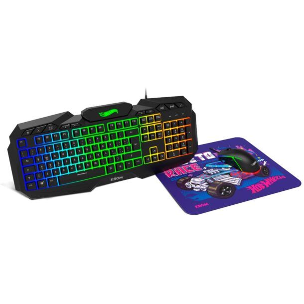 Il KROM Kit Hot Wheels KUSTOM è un set completo pensato per i gamer che desiderano un'esperienza di gioco immersiva e personalizzata. Questo kit include una tastiera a membrana, un mouse ottico e un tappetino per il mouse, tutti caratterizzati da un design accattivante in edizione speciale Hot Wheels.