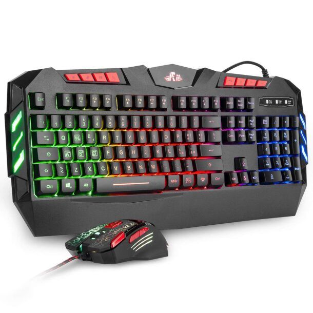 Il mouse incluso nel set è altrettanto impressionante. Con sei pulsanti reattivi e un sensore di alta precisione che può essere regolato fino a 3000 DPI, offre un controllo preciso e fluido. Come la tastiera, anche il mouse è dotato di illuminazione LED RGB, che può essere personalizzata per adattarsi al tuo stile.