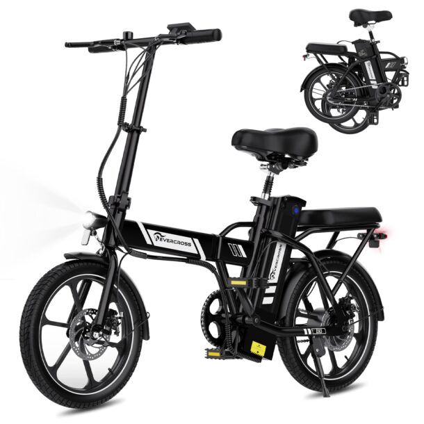La Evercross EK5 è una bici elettrica compatta pensata per un uso misto città–percorsi fuoristrada leggeri, con un’impostazione che privilegia la praticità senza rinunciare a stabilità e sicurezza. Il telaio in lega di acciaio crea una struttura robusta, capace di sostenere fino a 120 kg di carico, mantenendo il peso complessivo a 22,5 kg: un valore adeguato per una e-bike pieghevole con componenti completi e ben dimensionati.