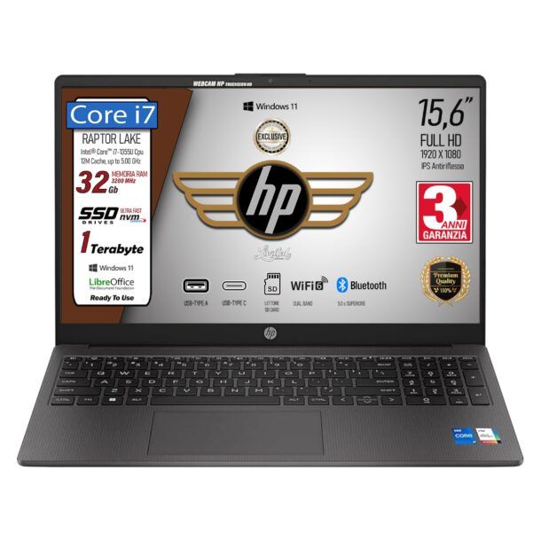 L’HP 15 è pensato per chi cerca una macchina equilibrata e moderna, capace di gestire senza problemi attività impegnative e multitasking intenso. Il cuore del sistema è l’Intel Core i7‑1255U, un processore di dodicesima generazione con 10 core e 12 thread, capace di spingersi fino a 4,7 GHz grazie alla tecnologia Turbo Boost. Questo si traduce in una reattività evidente: applicazioni pesanti, numerose schede del browser aperte e strumenti professionali girano in modo fluido, senza rallentamenti percepibili nell’uso quotidiano.