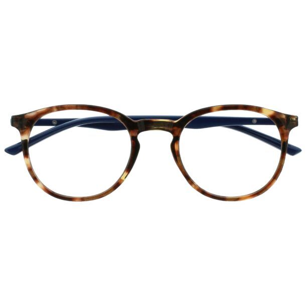 Questi OPULIZE Met sono occhiali filtranti per la luce blu con lenti trasparenti a ingrandimento zero (+0.00), pensati per chi passa molte ore davanti a schermi digitali ma non ha bisogno di correzione visiva. La montatura è rotonda a montatura completa, in metallo leggero, con finitura tartarugata marrone sul frontale e aste blu scuro, una combinazione cromatica sobria ma moderna che si integra bene sia in un contesto professionale sia informale.