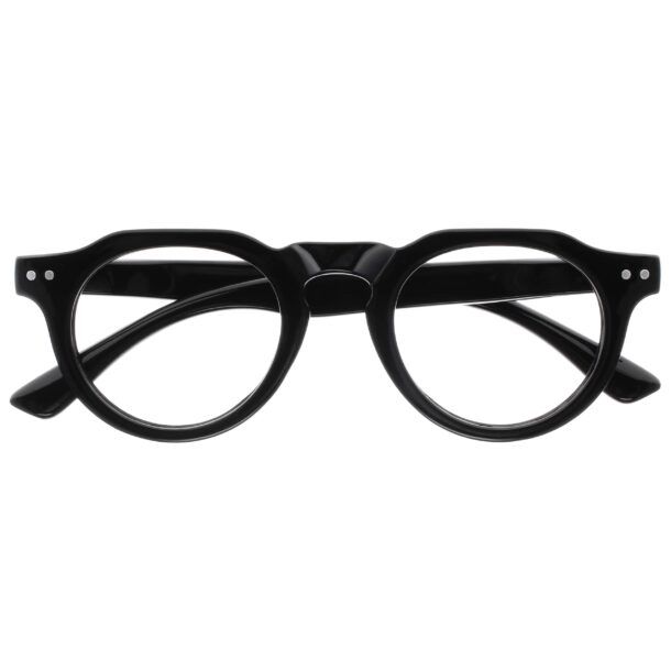Il design robusto del telaio rotondo con cerniere a molla garantisce una vestibilità comoda e una maggiore durata nel tempo. Gli occhiali sono realizzati in plastica di alta qualità, resistente ai graffi e facile da pulire. La finitura nera conferisce un tocco di eleganza e versatilità, rendendo questi occhiali adatti sia per uomini che per donne.