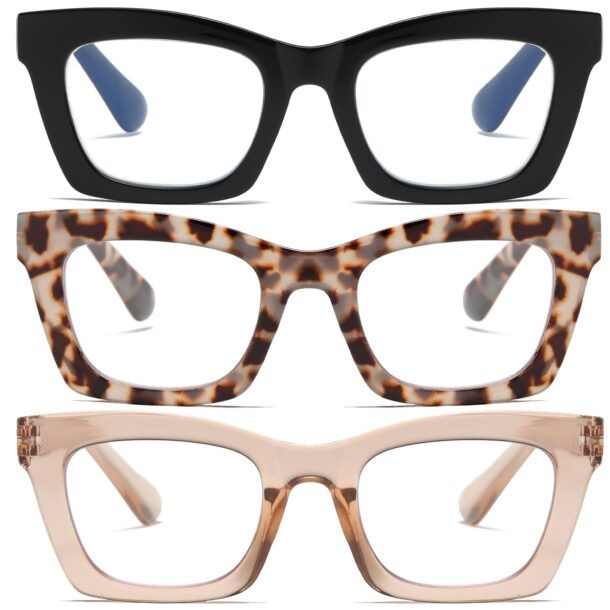 JM 3 Pack Occhiali da Lettura Quadrati, Lettore di Computer con Blocco...
