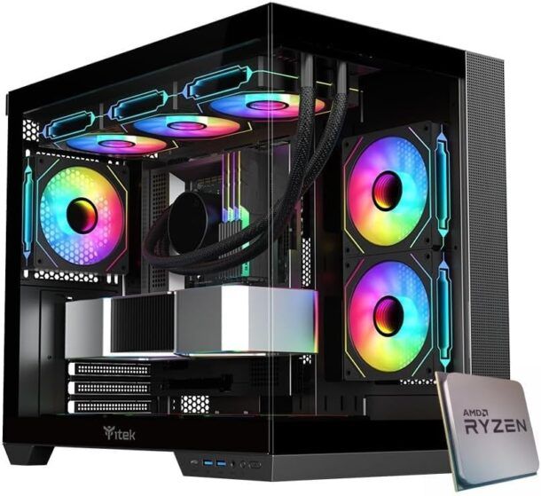Un aspetto che colpisce immediatamente è il design del case, arricchito da componenti RGB che conferiscono al sistema un look futuristico e accattivante. Questa attenzione all'estetica non compromette la funzionalità: il raffreddamento ad acqua integrato mantiene temperature ottimali, permettendo al sistema di operare senza intoppi anche sotto carichi pesanti. L'alimentatore da 750 W completa l'insieme, fornendo energia sufficiente per sostenere tutte le componenti senza problemi.
