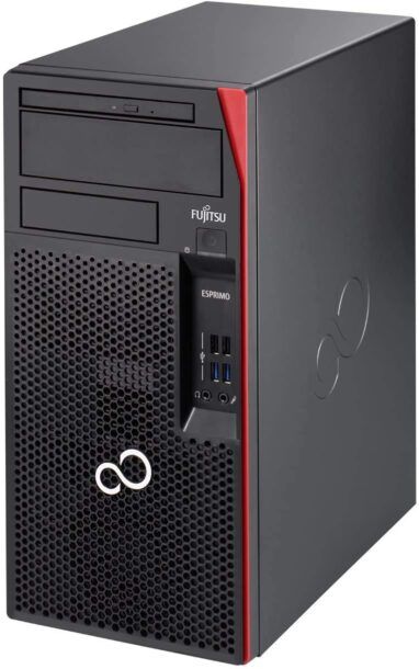 Il design del Fujitsu Esprimo P757/E85+ è solido e robusto, con un elegante colore nero-antracite che si adatta facilmente a qualsiasi ambiente di lavoro. Nonostante le sue dimensioni compatte, il PC offre una buona capacità di espansione, grazie ai numerosi slot interni per la memoria e le schede PCI Express.