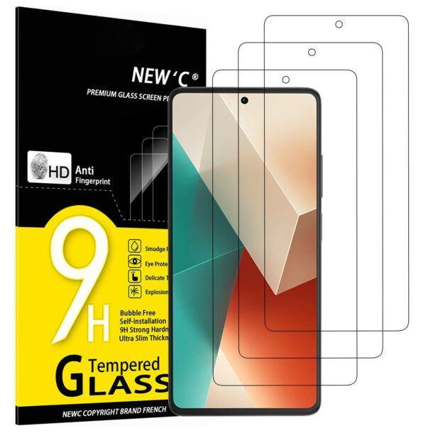 Il prodotto di cui parliamo oggi è il vetro temperato NEW'C per Xiaomi Redmi Note 13, un accessorio essenziale per chi desidera proteggere efficacemente il proprio smartphone. Questo set include tre pezzi di pellicola protettiva, ognuno progettato con una precisione impeccabile per adattarsi perfettamente al display da 6,67 pollici del tuo dispositivo.