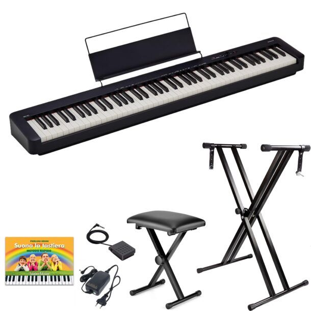 Il Casio CDP S110 è inoltre dotato di uno stand con ghiera e una panchetta con altezza regolabile. Questi accessori sono fondamentali per garantire il massimo comfort durante le sessioni di pratica musicale. Il pedale incluso, modello SP-3, completa l'offerta, arricchendo ulteriormente le possibilità espressive del pianista.