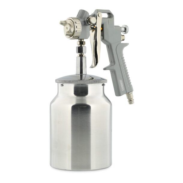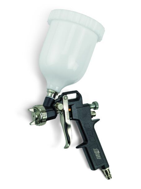 - Capacità serbatoio — ogni pistola ha un suo serbatoio, il quale può essere più o meno generoso. Più grande è meglio è? Non è detto, dipende dai casi. Avere una pistola con un grande serbatoio attaccato dietro vuol dire portarsi appresso tutto il peso della vernice in aggiunta, la quale non è leggera e ti affaticherà molto di più con il tempo. D'altro canto, un serbatoio minuscolo è frustrante perché ti costringe a fermarti per il rabbocco ogni manciata di minuti. In linea di massima, qualcosa che abbia tra i 600 e i 1.200 ml va più che bene. Certo, discorso a parte per le pistole airless, le quali hanno il serbatoio attaccato al corpo macchina che può contenere anche diversi litri. In questo caso, più grande è meglio è.