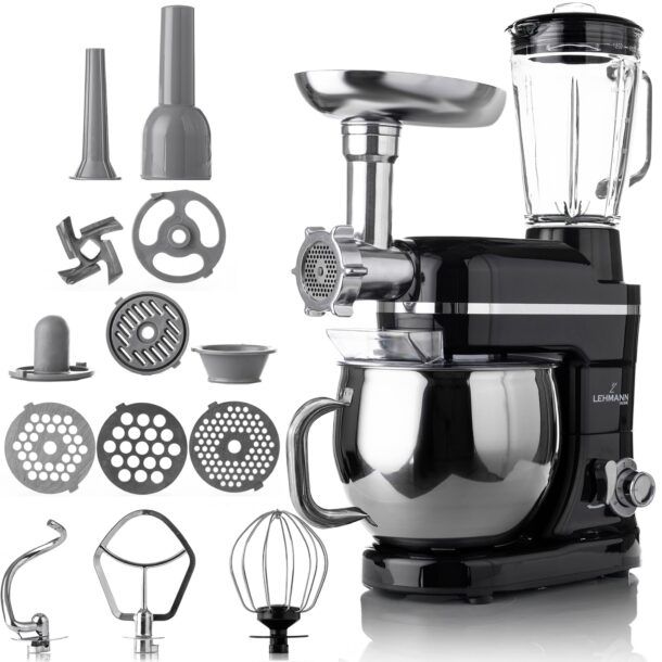 Un ulteriore vantaggio di questo robot da cucina è la sua versatilità. Oltre alla funzione di mescolatore, include un tritacarne e uno spremiagrumi da 1,5 litri, offrendo così molteplici possibilità d'uso in un unico apparecchio. Gli accessori inclusi, come l'inserto per impastare, la frusta e la frusta a filo, ampliano ulteriormente le opzioni culinarie a tua disposizione.