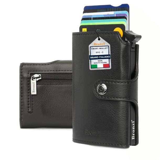 Il portafoglio Bronzi® si presenta come un accessorio essenziale per chi cerca praticità e stile in un unico prodotto. Realizzato in pelle PU di alta qualità, questo portafoglio offre una resistenza superiore pur mantenendo l'eleganza tipica della vera pelle. La scelta del materiale riflette un impegno verso la sostenibilità, evitando l'uso di pelli animali senza compromettere l'estetica.