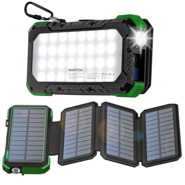 Questo power bank solare WASTDE si presenta come una soluzione di alimentazione portatile pensata per chi si muove spesso all’aperto e ha bisogno di autonomia reale, non solo sulla carta. La capacità dichiarata di 26800mAh è adatta a sostenere sessioni prolungate di utilizzo: in condizioni tipiche puoi aspettarti più di 6 ricariche complete di uno smartphone moderno e almeno 2 ricariche di un tablet, con margine per altri piccoli dispositivi USB. La batteria al polimero di litio con oltre 1600 cicli di ricarica indicati dal produttore suggerisce una buona longevità operativa, aspetto non banale per chi lo usa intensivamente.