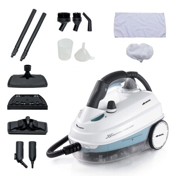 Uno degli aspetti più interessanti dell'Ariete 4146 XVapor Deluxe è il suo ricco kit di accessori. Nel vano portaccessori integrato, troverai tutto ciò di cui hai bisogno per affrontare diverse tipologie di sporco: dai tubi prolunga alla spazzola, dall'accessorio lavavetri agli spazzolini rotondi di varie dimensioni. Questa dotazione ti consente di adattare il pulitore a qualsiasi superficie, dal pavimento ai tessuti, passando per i vetri e le piastrelle.