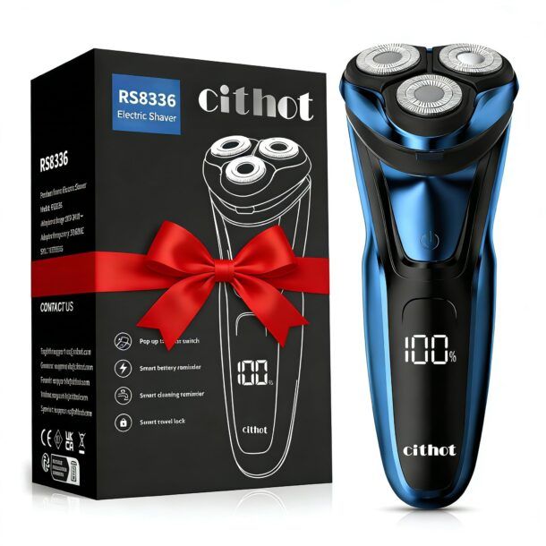 Il Rasoio Elettrico Barba Con 3D Testine Rotanti di CITHOT è un dispositivo ideale per chi cerca una rasatura precisa e confortevole. Questo rasoio elettrico uomo è dotato di un display LCD intelligente che mostra la percentuale di batteria durante l'utilizzo e la ricarica, oltre a fornire avvisi per la batteria scarica, il blocco tasto e la pulizia.