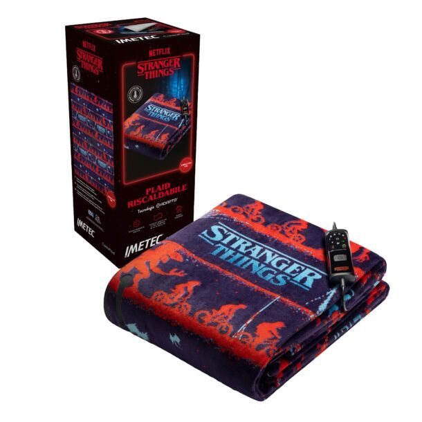 Questo CaldoPlaid Stranger Things XL di Imetec è un plaid riscaldabile di grandi dimensioni pensato per chi vuole unire comfort termico, estetica ricercata e un tocco di fandom. Il formato XL da 180x140 cm offre una copertura realmente ampia: puoi avvolgerti completamente sul divano o usarlo a letto senza avere la sensazione di “tirarlo” da una parte o dall’altra. I 1,8 kg di peso lo rendono sufficientemente stabile sul corpo senza risultare ingombrante.
