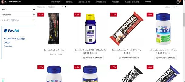 - Olympian's Store — si tratta di un'ottima piattaforma online specializzata nella vendita di integratori sportivi e di accessori per la palestra, ragion per cui penso sia uno dei migliori siti integratori palestra. La spedizione è gratuita per acquisti pari o superiori a 69 euro, per cifre inferiori, invece, il costo di spedizione varia in base al peso del pacco e alla regione. È possibile effettuare il pagamento con carta di credito, PayPal e in alcuni casi anche in contrassegno. Per ulteriori informazioni, consulta pure la pagina dedicata alle condizioni di vendita.