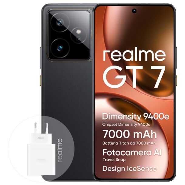 Il realme GT 7 si presenta come un dispositivo all'avanguardia, capace di soddisfare le esigenze degli utenti più esigenti grazie a una serie di caratteristiche tecniche di prim'ordine. Dotato del chipset di punta Dimensity 9400e, questo smartphone offre prestazioni eccezionali, posizionandosi tra i migliori della sua categoria con un punteggio AnTuTu superiore ai 2,4 milioni. Questo risultato lo rende ideale per chi cerca fluidità e potenza, specialmente in ambito gaming, dove la latenza zero e il supporto a 120 fps per giochi come PUBG fanno davvero la differenza.