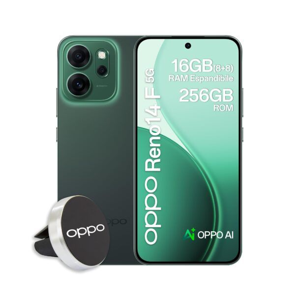 L'Oppo Reno11 F 5G, nella sua elegante colorazione Palm Green, rappresenta un eccellente esempio di come la tecnologia moderna possa essere integrata in un design raffinato e funzionale. Con 8 GB di RAM e una capacità di archiviazione interna di 256 GB, questo smartphone offre prestazioni fluide e spazio sufficiente per tutte le tue esigenze digitali, dalle applicazioni più pesanti ai file multimediali.