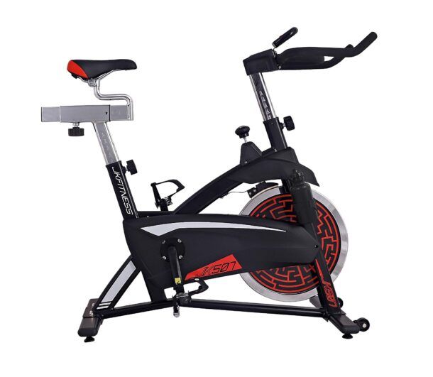 La JK507 di JK FITNESS è una spin bike indoor compatta e solida, pensata per chi vuole un allenamento intenso e continuo tra le mura di casa. Il cuore del prodotto è il volano da 18 kg con pignone fisso, una scelta tecnica che offre una pedalata fluida, rotonda e con una buona inerzia, molto vicina alla sensazione che hai su una bici da strada quando mantieni una cadenza costante.
