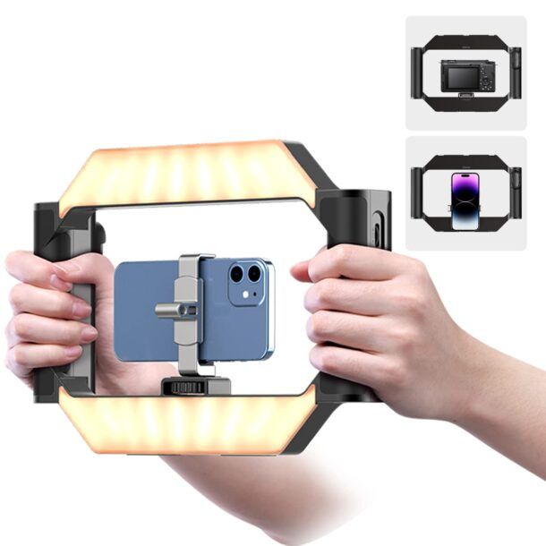 Dal punto di vista della compatibilità, l’U-Rig Light dimostra un’impostazione molto aperta. Puoi montare smartphone da 4 a 7 pollici, inclusi i modelli più diffusi come iPhone, Galaxy, Huawei, Xiaomi, Redmi e OPPO, ma anche fotocamere mirrorless come quelle di Sony e fotocamere SLR di dimensioni normali. Inoltre, la presenza di punti di fissaggio dedicati ti consente di collegare luci aggiuntive, torce, microfoni e altri accessori, trasformando il rig in una piccola piattaforma modulare per la creazione di contenuti.